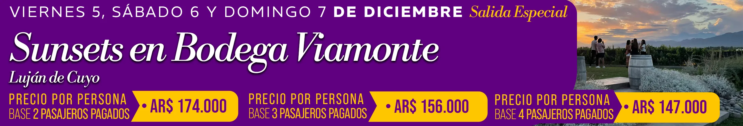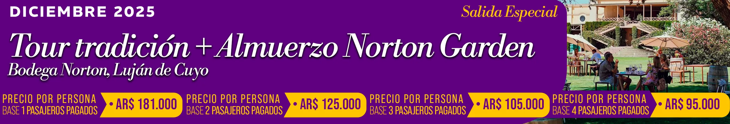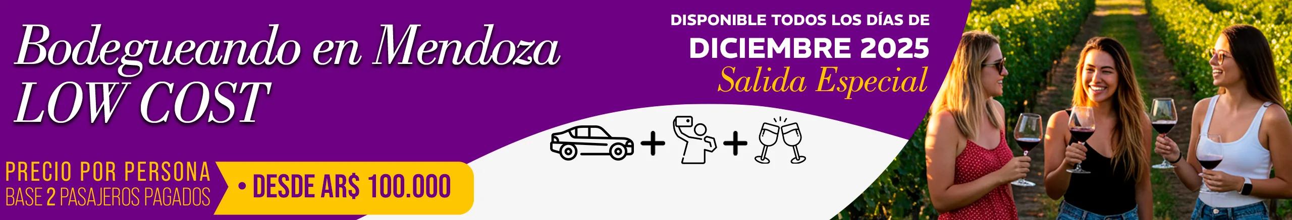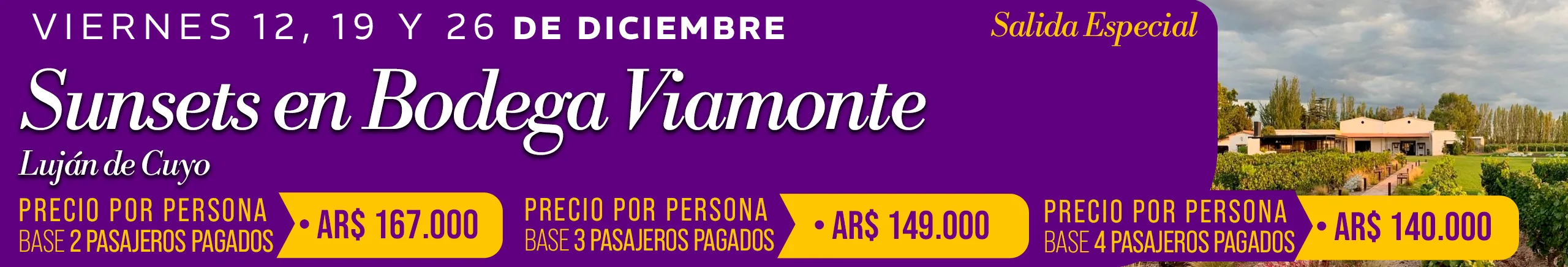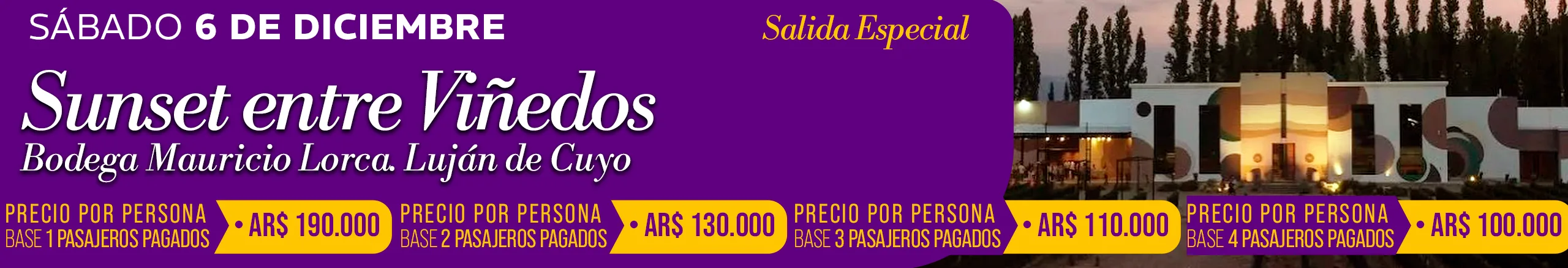 -Domingo 23/11/25 Camino del Vino Valle de Uco: Por evento privado, Posada Salentein no ofrecerá almuerzos. Disponible: Bodega Domaine Bousquet – Gaia Restaurante. -Jueves 25/12/25 Camino del Vino Luján de Cuyo Tierra Malbec: No realizaremos la salida, ya que en esta fecha las bodegas permanecerán cerradas. Solo estará disponible el servicio Tailor Made – Servicio Personalizado Cena en Rosell Boher Lodge -Jueves 01/01/26 Camino del Vino Luján de Cuyo Tierra Malbec: No realizaremos la salida, ya que en esta fecha las bodegas permanecerán cerradas. Solo estará disponible la Salida Especial 1º Sunset del Año en Rosell Boher Lodge.