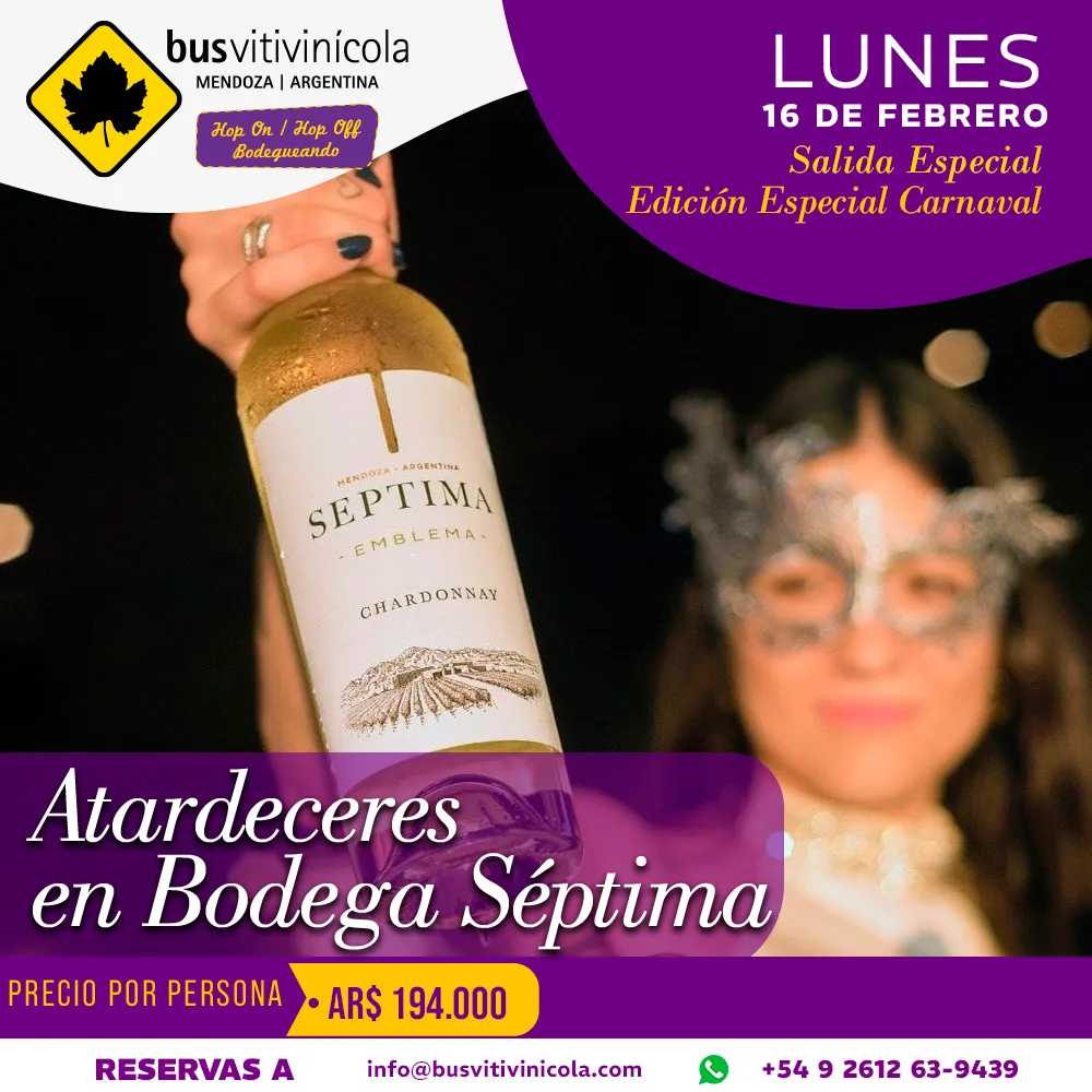 - Bodega Séptima Experiencia Atardecer: Gastronomía, Vinos, Ambientación y musicalización en vivo de Martín Guerrero Dj.