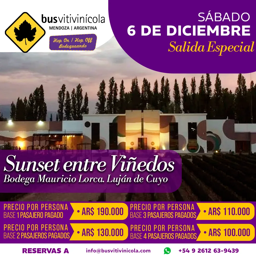 Bodega Mauricio Lorca – Sunset entre Viñedos: ingreso evento + sandwich + botella de vino